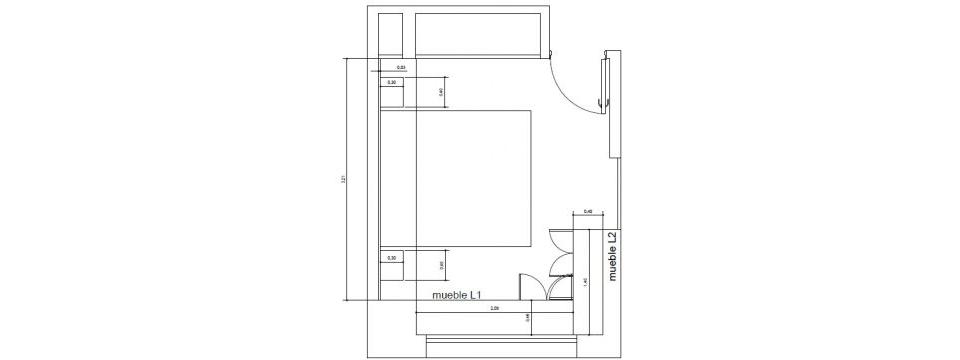Propuesta de diseño para un dormitorio en suite de acotadas dimensiones.Se propone el blanco como fondo principal tratando de iluminar el ambiente marcando las profundidades.