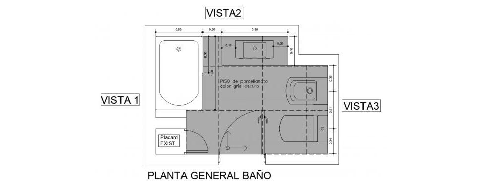 El siguiente proyecto contempla la refacción del baño existente como puede verse en la foto inicial.