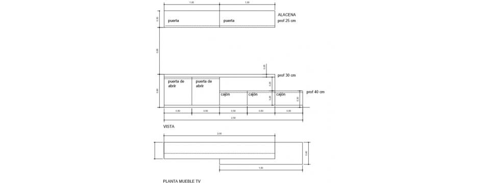 Se diseñan todos los muebles sobre medida en living y dormitorios incluyendo también todo el equipamiento del living - comedor.